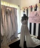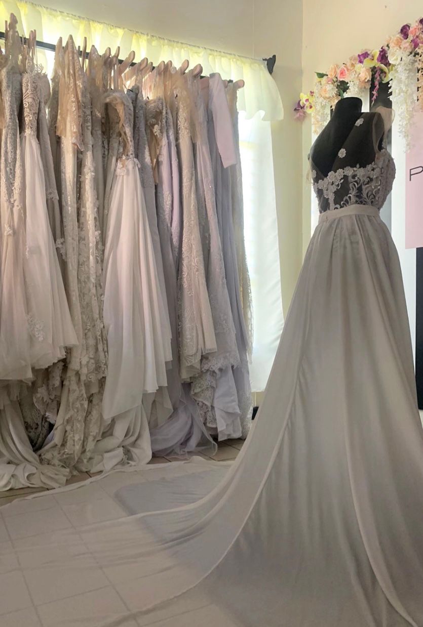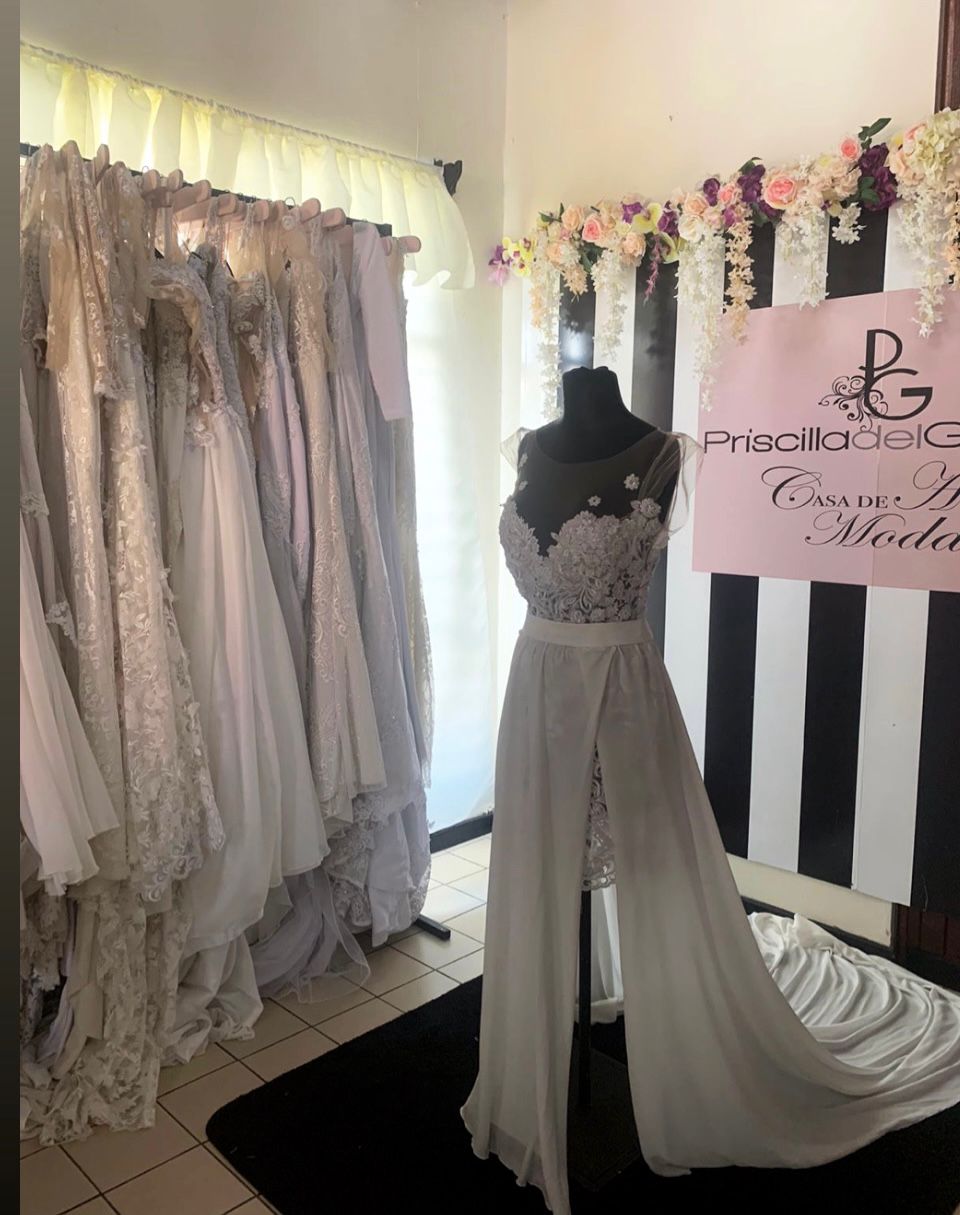 Vestido Sirena confeccionado todo en encajes, con tirantes, espalda en V, cierre en cuello trasero.
